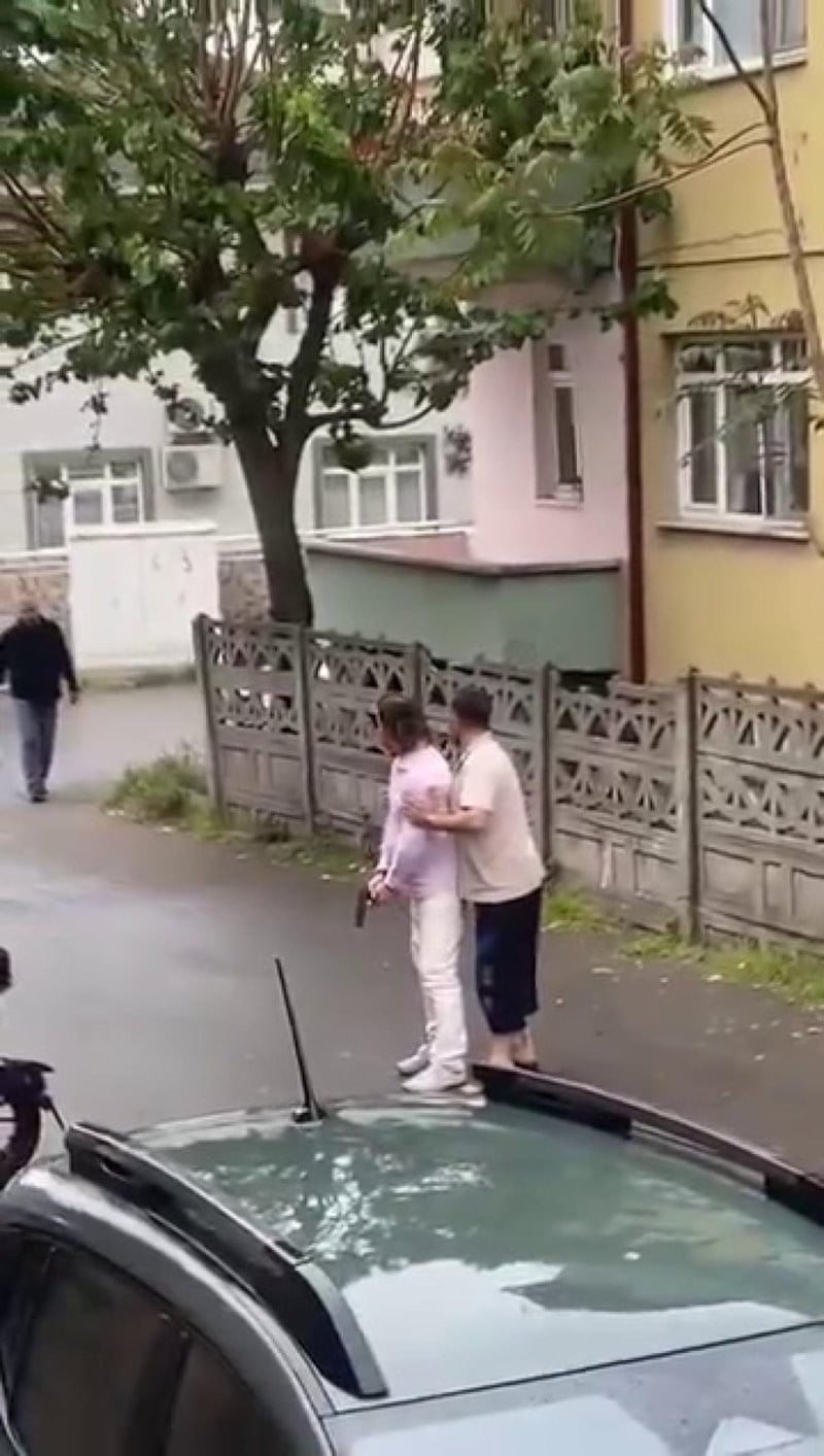 Adapazarı ilçesinde sokaktan geçen motosikletlerin egzoz sesinden rahatsız oldukları iddiasıyla 2 kişiden biri elinde tabanca, diğeri ise balyozla dışarı çıktı. Tabancalı ve balyozlu kişiler güçlükle sakinleştirilirken, o anlar cep telefonuyla görüntülendi.