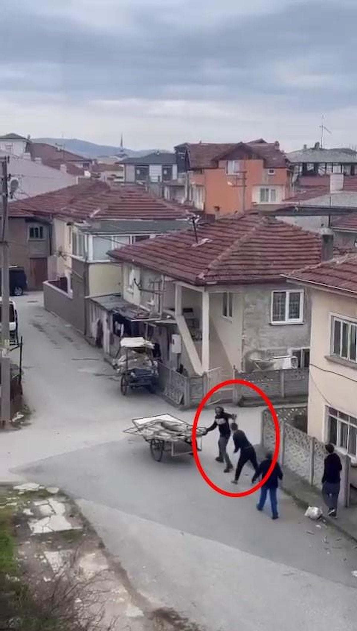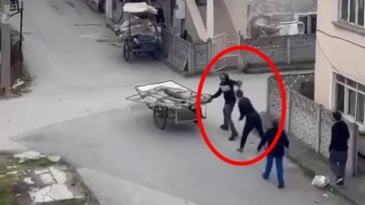 Görüntülerde, elinde sopa olan şahsın, eskiciye defaten vurması ve eskicinin kendini koruyarak olay yerinden uzaklaşması yer alıyor.