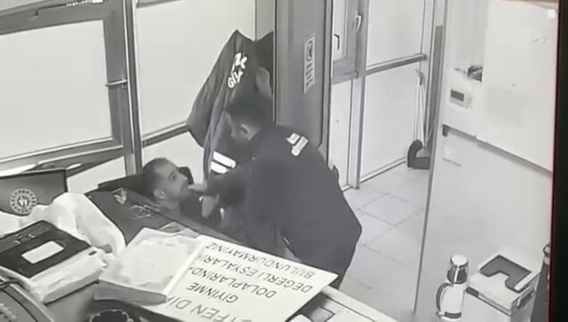 Durumu fark eden güvenlik görevlisi Y.B. ise E.A.'nın sırtına vurarak müdahale etti.