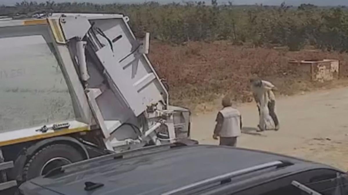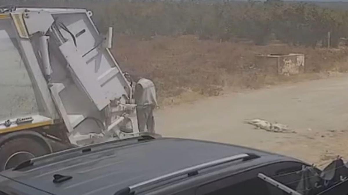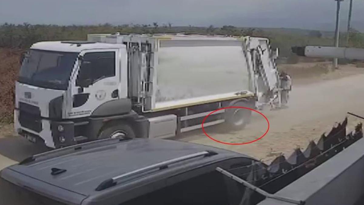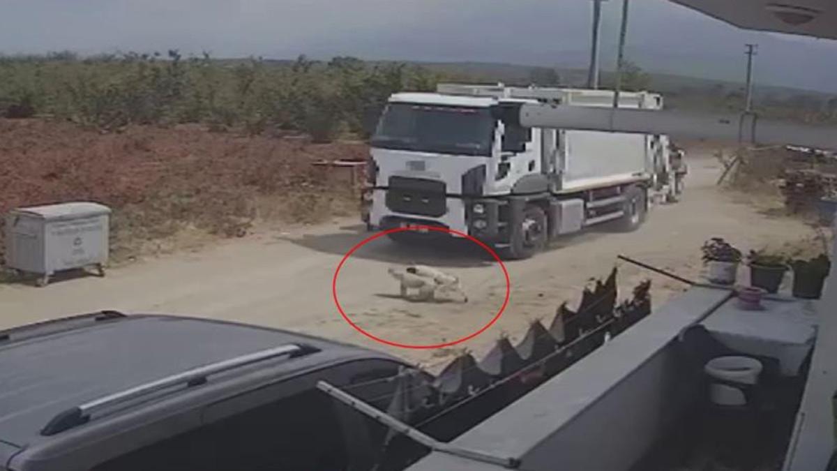 Görüntülerde manevra yaptıktan sonra sokakta ilerleyen çöp kamyonunun yola atlayan köpeklere çarpması, araçtan inen işçilerin ölen köpekleri kamyona yüklemesi yer alıyor.