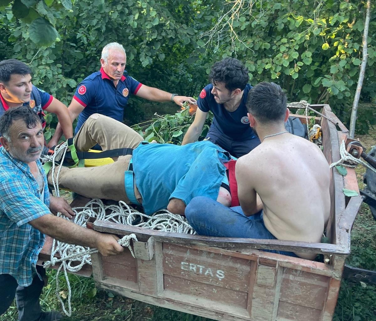 Fındık tarlasında filiz alan Hasan A., dengesini kaybederek dereye düştü.