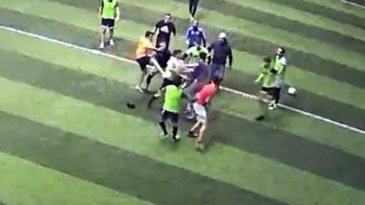 Yeşil sahanın adeta boks ringine döndüğü olayda, orada bulunan diğer vatandaşlar kavgayı ayırmak için sahaya girdi.