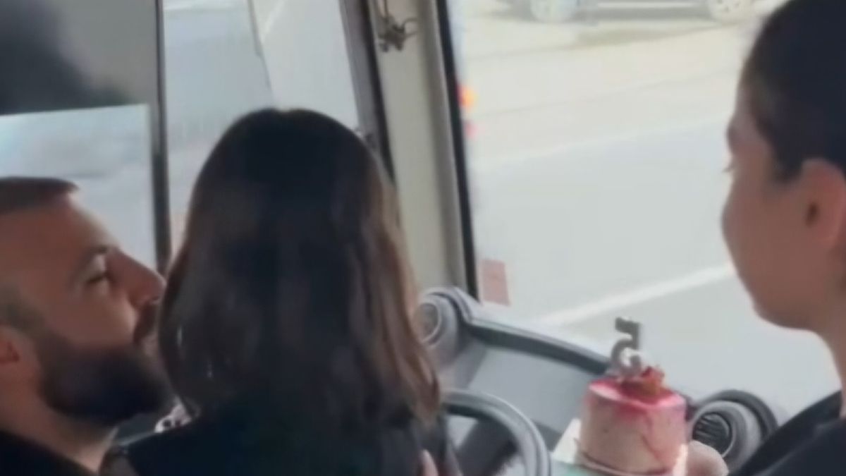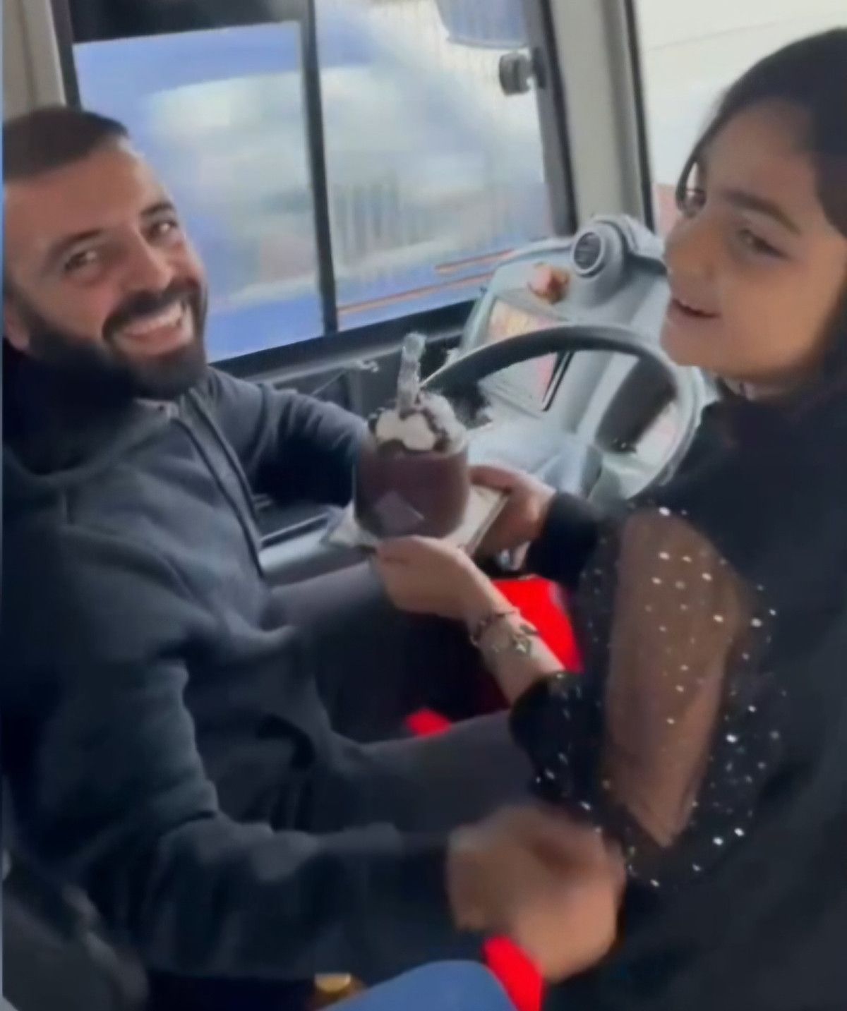 - Kızları Asmin ve Tuğba, otobüste babalarına pasta getirerek yolcularla birlikte kutlama yaptı.