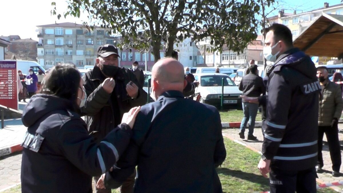 Ekipler kalabalığı dağıtmak için uyarıda bulunurken, zabıta müdürü ile vatandaşlar arasında kısa süreli tartışma yaşandı.