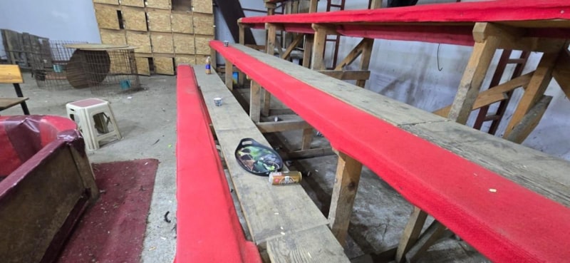 Özel olarak hazırlanan tribün ve ringin bulunduğu mekanda yapılan aramada, 52 Hint dövüş horozu ele geçirildi.