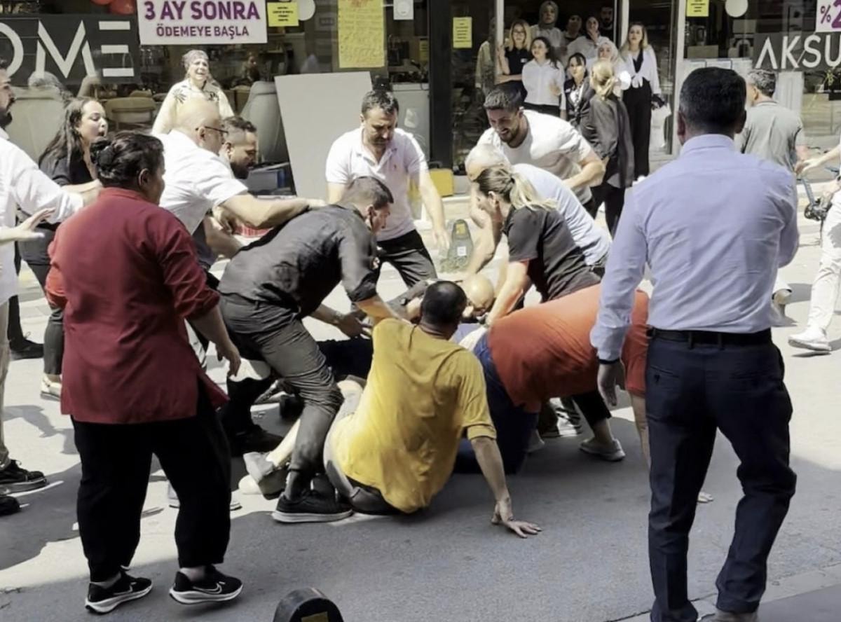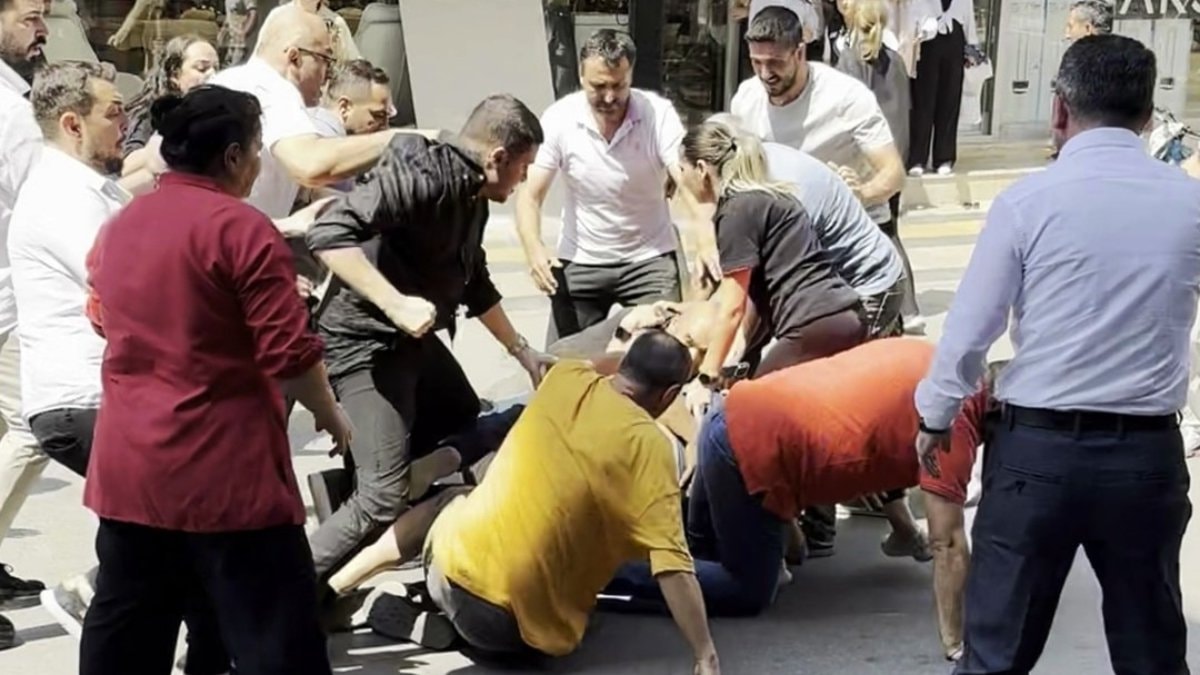Kısa sürede kavgaya dönüşen olayda yumruk ve tekmeler havada uçuştu.