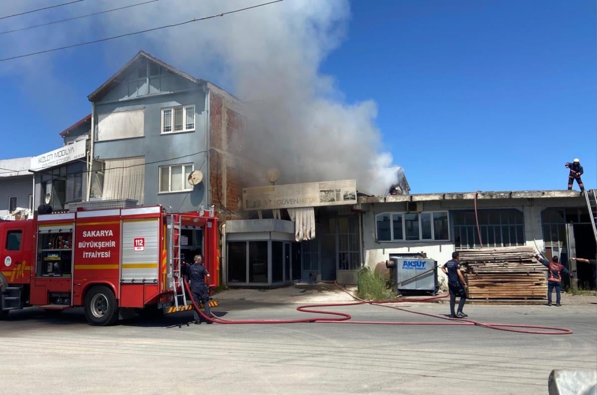 Sakarya'nın Serdivan ilçesinde aktif olan ve metal otomatik kapı üretimi yapılan iş yerinde korkutan bir yangın çıktı.