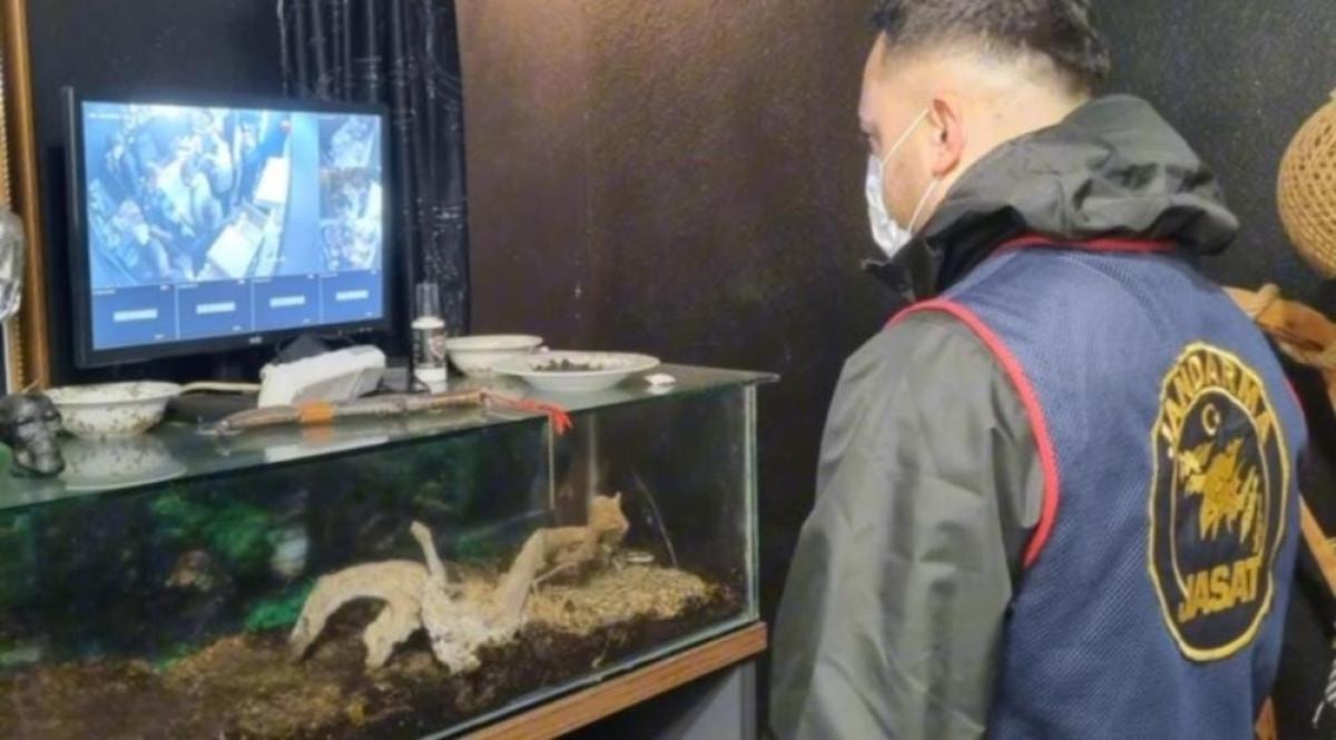 Hususa ilişkin ev ve iş yerinde yapılan aramalarda, R.K.’nin izinsiz beslediği belirlenen iki kraliyet pitonu ve yılanı beslemek için kullanılan canlı 11 hamster ele geçirildi.