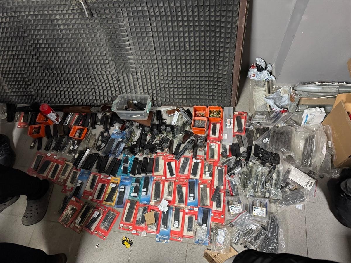 Baskında 13 ruhsatsız tabanca, 1200 fişek, 300 tabanca şarjörü, 1 ruhsatsız av tüfeği ve 3 elektroşok cihazı ele geçirildi.
