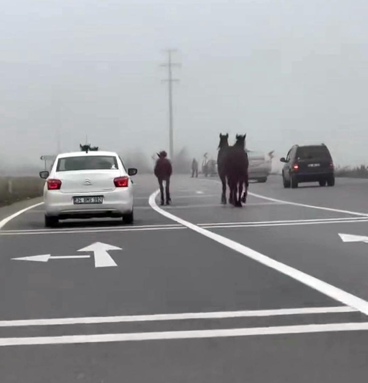 Bir süre yolun ortasında özgürce koşan atlar, daha sonra yol kenarına yönelerek gözden kayboldu. Vatandaşların kaydettiği görüntülerde, asfalt üzerinde hızla ilerleyen atların şehir trafiğine doğaçlama bir gösteri sunduğu anlar dikkat çekti.