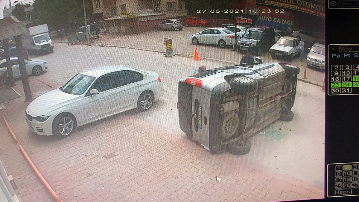 Sakarya’nın Adapazarı ilçesi Yenidoğan Mahallesi Ana Sokak istikametinden Yeni Bosna Caddesi’ne doğru seyir halinde olan hafif ticari araç ile Pembe Sokak üzerinde seyir halinde olan hafif ticari araç, sokak birleşiminde çarpıştı.