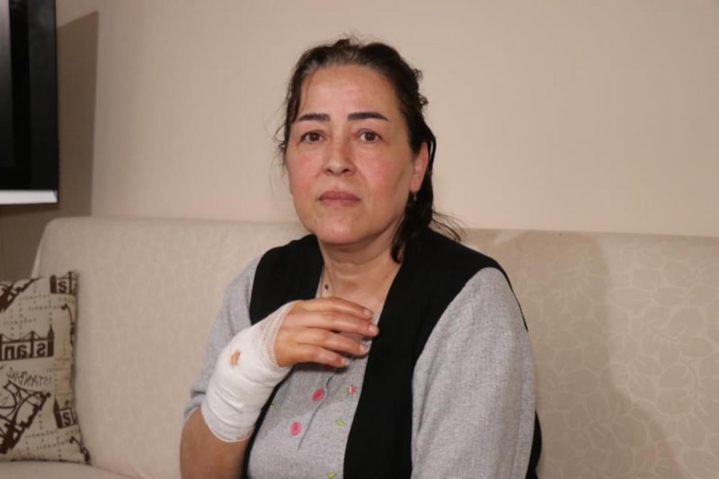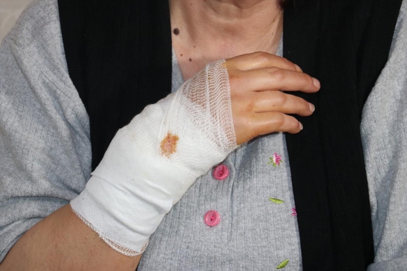 Ben o esnada süründüm ve köpeğin benden uzaklaşmasını fırsat bildim. Sürünerek bir apartman kapısından içeriye kendimi attım dedim ki ben ölüyorum herhalde. Çünkü baktım burnumdan da kan gelmeye başladı. Şeker hastasıyım, ama bilincimi kaybetmemeye çalışıyorum. Ellerim, ayaklarım karıncalaşınca dedim kan kaybediyorum herhalde. Ambulans çağırın diye yalvardım ve kızıma haber verin dedim çevredekilere."
