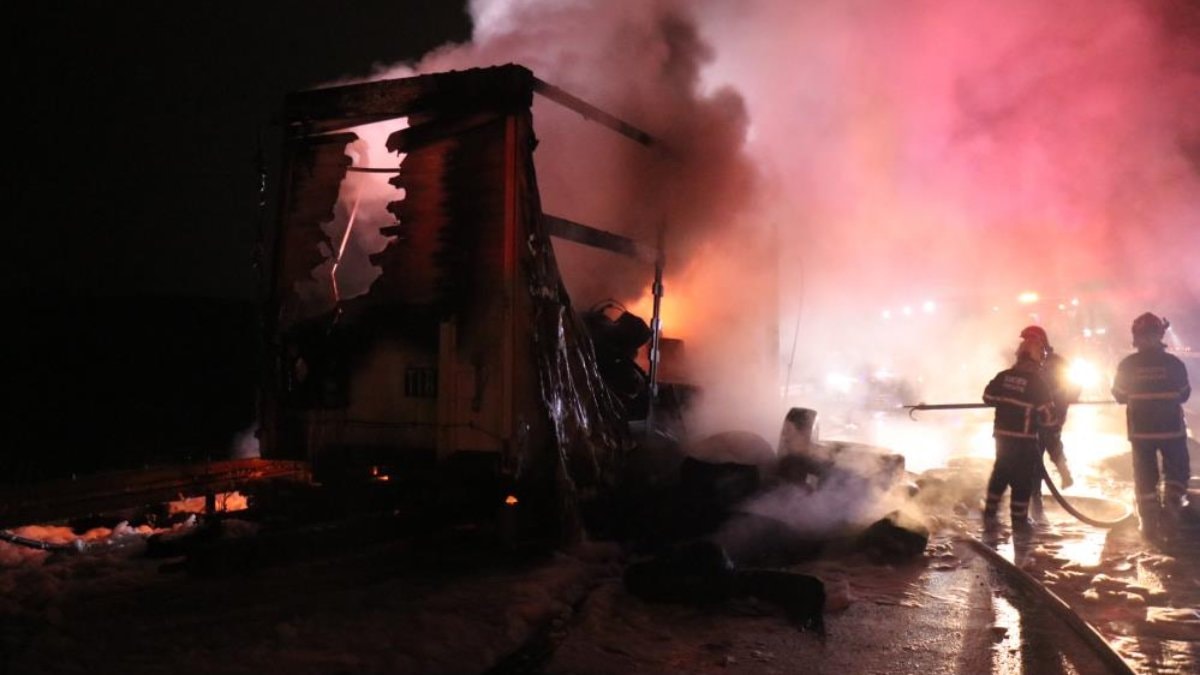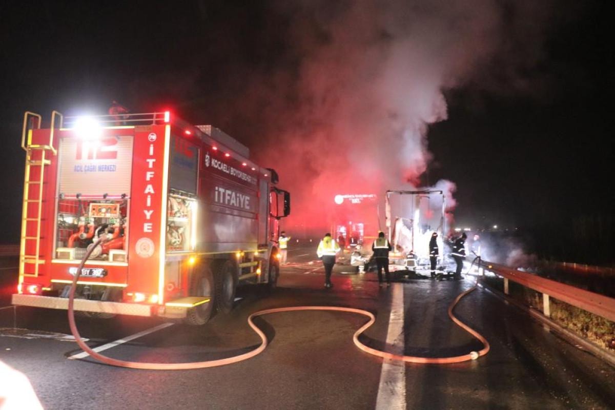 Sakarya-Kocaeli sınırındaki otoyolda, Beşevler Mahallesi mevkiinde İstanbul yönünde meydana gelen olayda, yabancı plakalı bir kamyonun taşıdığı lastik yüklü yarım dorsede yangın çıktı. Yabancı uyruklu sürücü P.A.'nın kullandığı kamyonun dorsesi, henüz bilinmeyen bir sebeple yanmaya başladı.