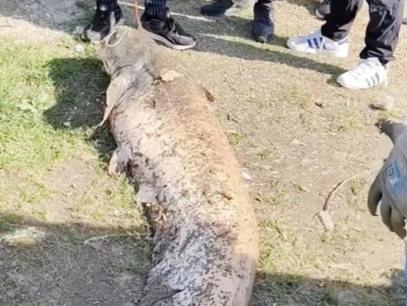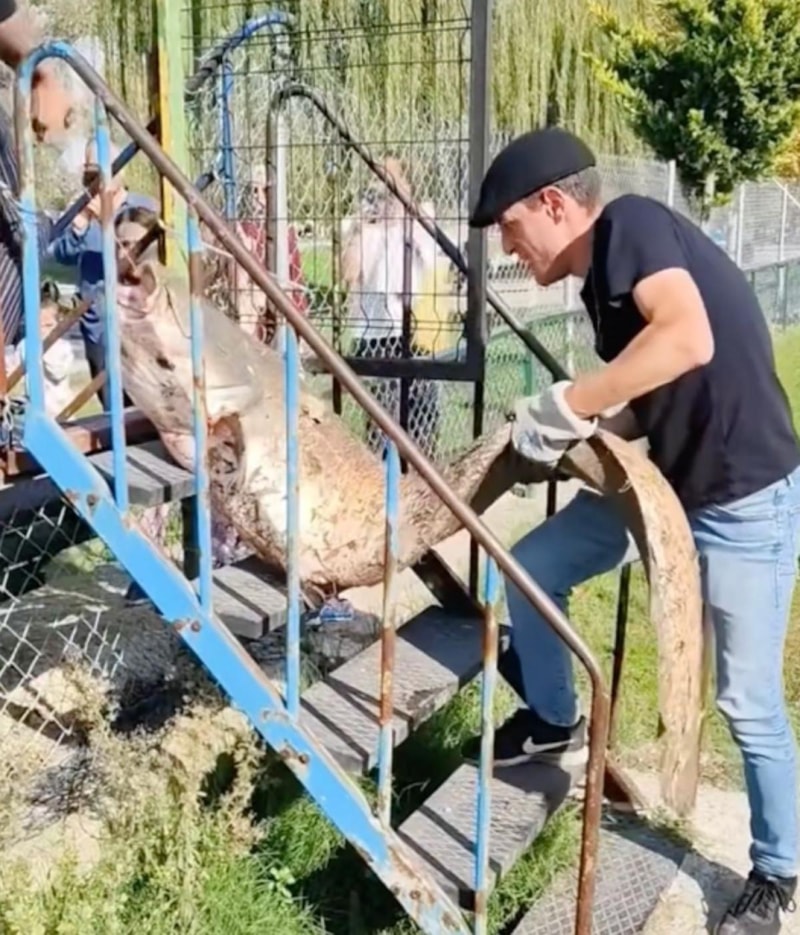 Kentte ailesiyle nehir kıyısında piknik yapan amatör balıkçının oltasına, yaklaşık 50 kilogram ağırlığında dev yayın balığı takıldı. Balıkçının, yakaladığı balığı 20 bin liraya sattığı öğrenildi.