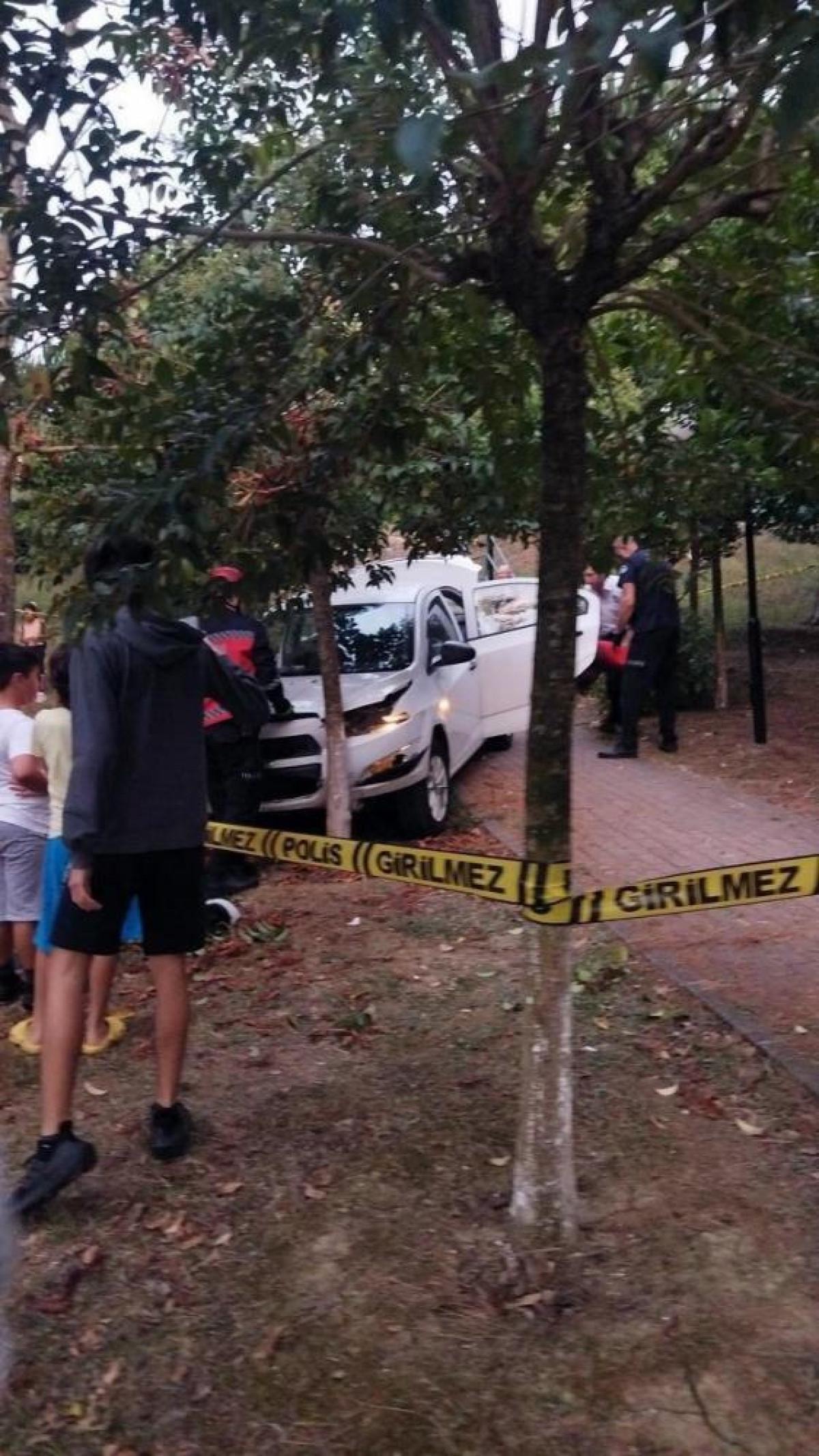 Sakarya'nın Adapazarı ilçesi Korucuk Mahallesi'nde bulunan bir site içerisinde sürücüsünün direksiyon hakimiyetini kaybetmesi neticesinde kontrolden çıkan otomobil merdivenlerden düşüp ağaca çarparak durabildi.