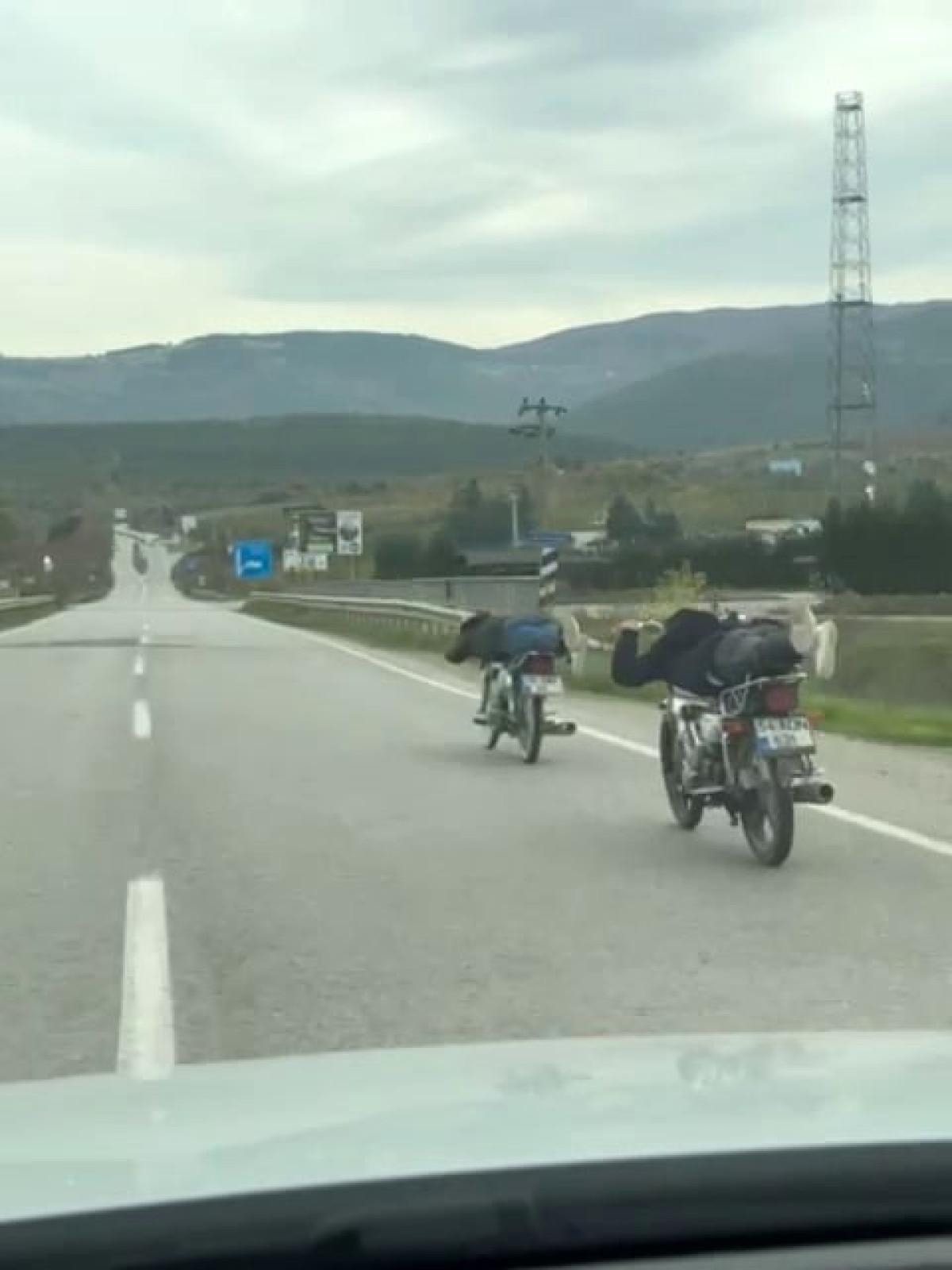 Sakarya'da Geyve-Taraklı D-150 kara yolu Eşme Mahallesi mevkiinde meydana gelen olayda, kasksız iki motosiklet sürücüsü, motosikletiyle ilerlediği sırada yaptığı hareketlerle tehlikeye davetiye çıkardı.