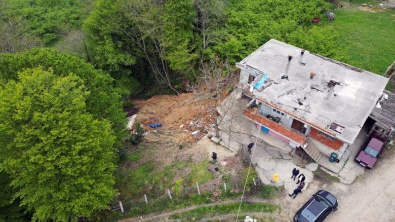 Toprak kaymasının yaşandığı bölge ise drone ile havadan görüntülendi.