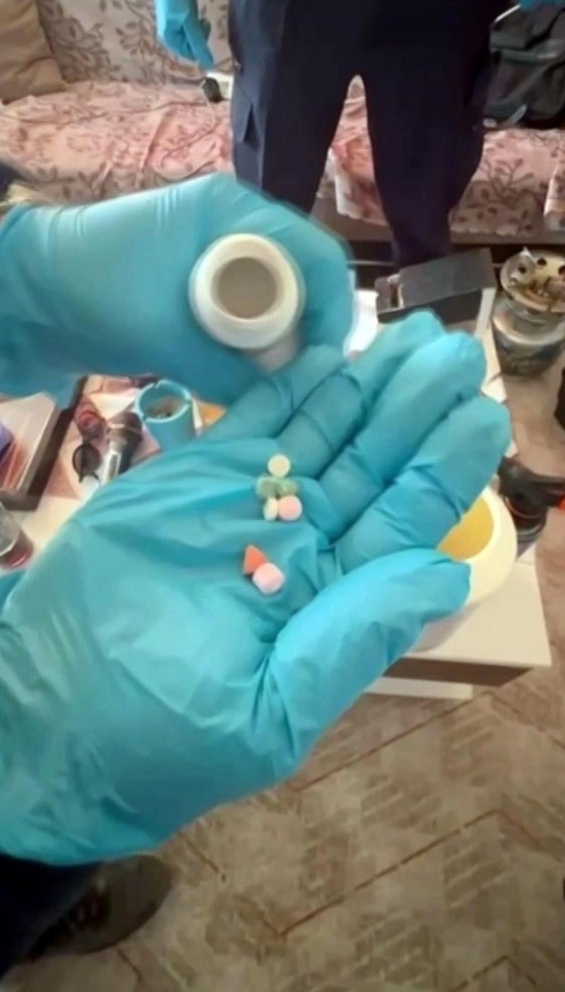 Ev ve eklentilerde yapılan aramada; 220 gram metamfetamin, 200 gram sentetik uyuşturucu, 30 gram skunk, 40 gram satışa hazır halde metamfetamin, 8 adet uyuşturucu kullanma aparatı, 2 adeta hassas terazi, 3 adet ruhsatsız tabanca, 1 adet yarı otomatik av tüfeği, 6 adet cep telefonu ele geçirildi.