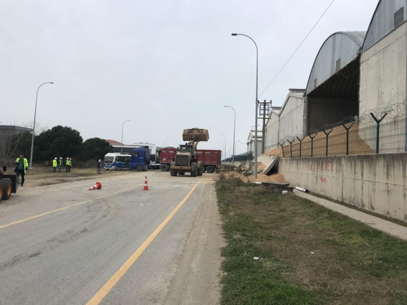 Karasu ilçesinde özel bir liman işletmesinde, tahıl ambarının duvarı yıkıldı ve içinde bulunan tahıllar caddeye dökülerek mal kaybına yol açtı.
