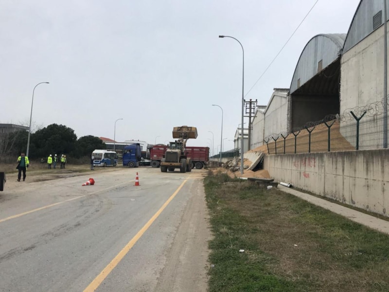 Sakarya’nın Karasu ilçesi, Yalı Mahallesi Batı Karadeniz Caddesi'ndeki özel bir liman işletmesinde, ambar deposunun duvarında çöküntü meydana geldi.