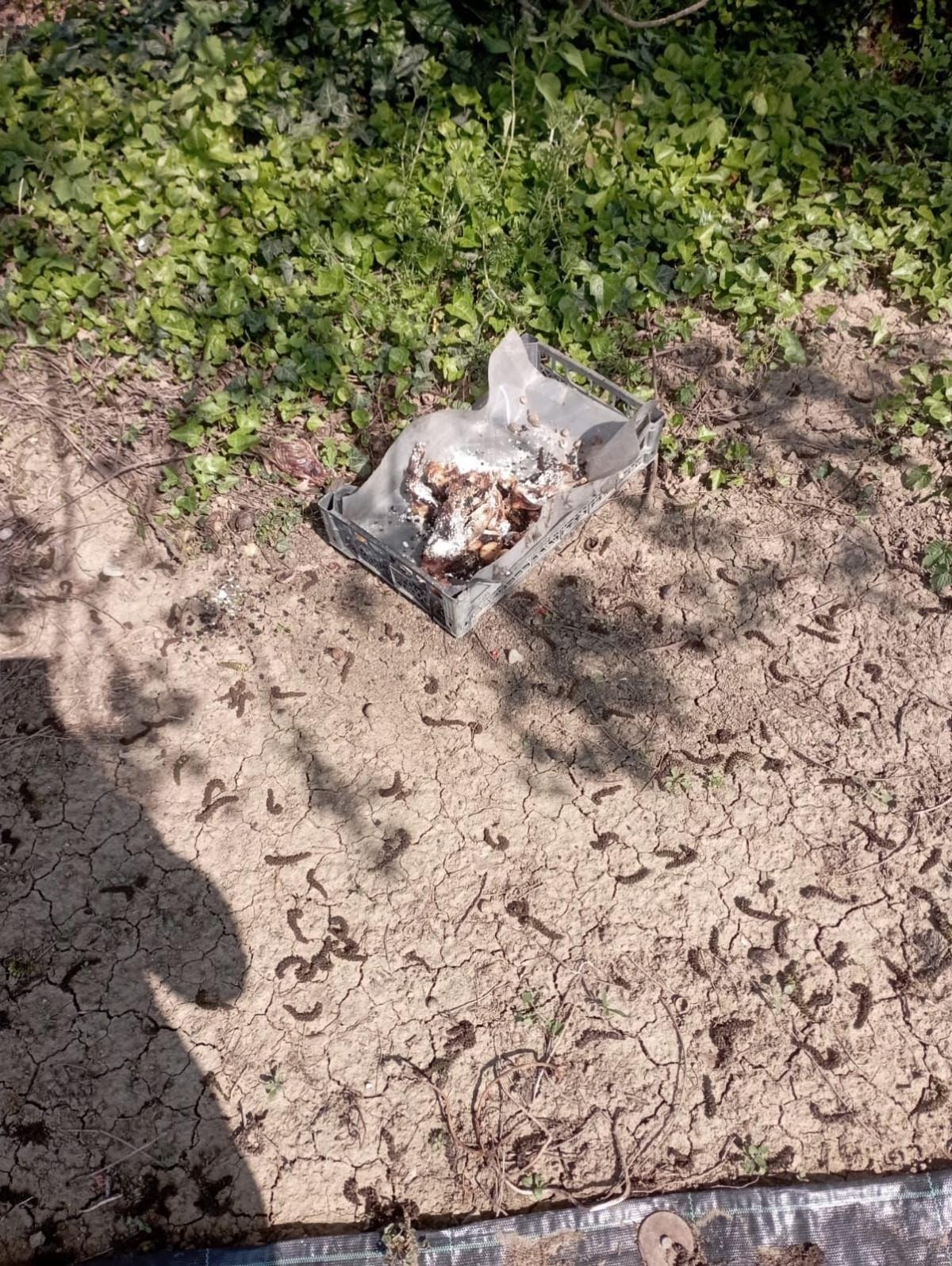 İhbar sonrası adli süreç başlatılırken, bölgedeki tavuk parçalarından numune alındı.