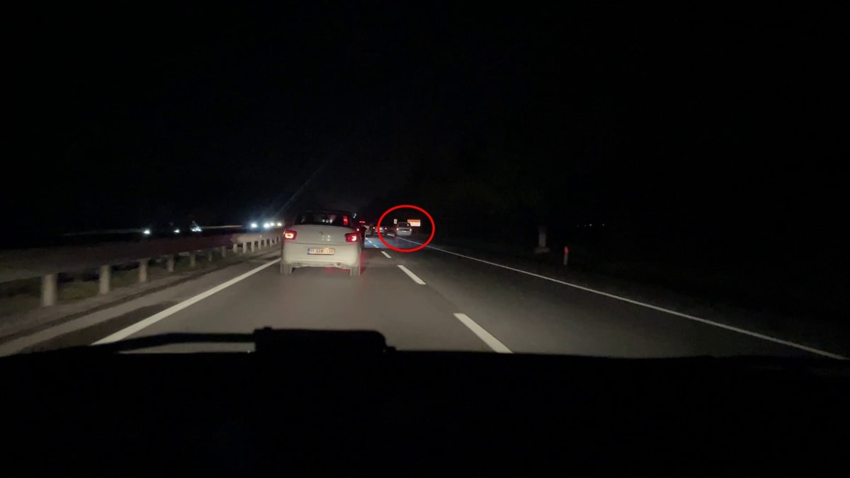 Görüntülerde, hafif ticari aracın diğer araçları geçmek için sıkıştırması, sinyal vermeden şerit değiştirmesi ve emniyet şeridinden bir süre ilerleyerek gözden kaybolması yer alıyor.