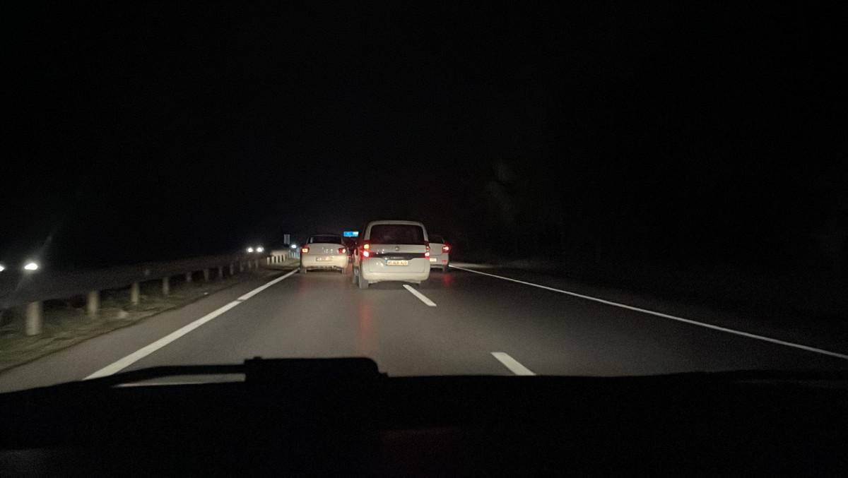 Hem kendi canını hem diğer sürücülerin canını hiçe sayan hafif ticari araç sürücüsü, emniyet şeridinden bir süre ilerledikten sonra gözden kayboldu.