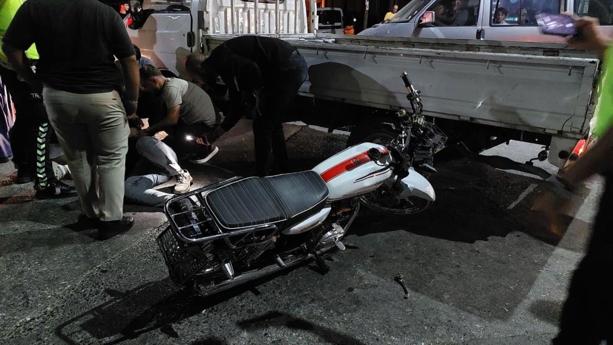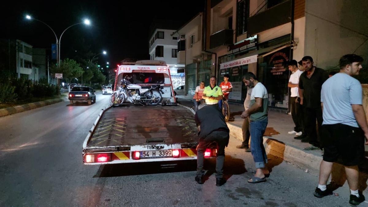 Sakarya’nın Akyazı ilçesi Ada Caddesi’nde dün gece saatlerinde plakasız ve trafikten men motosiklet, kavşaktan dönüş yapan bir kamyonetle çarpıştı. Kazada motosiklet sürücüsü A.K. (17) yola savruldu.