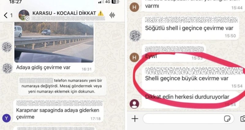 Durumun üzerine harekete geçen ekiplerce yapılan çalışma neticesinde; 22 Şubat 2024 tarihinde kurulan WhatsApp grubunda Kocaali, Ferizli, Söğütlü ve Adapazarı ilçeleri gidiş-dönüş istikametinde D-650 kara yolu üzerinde kurulan jandarma ile polis uygulama noktalarının anlık olarak paylaşıldığını tespit edildi.