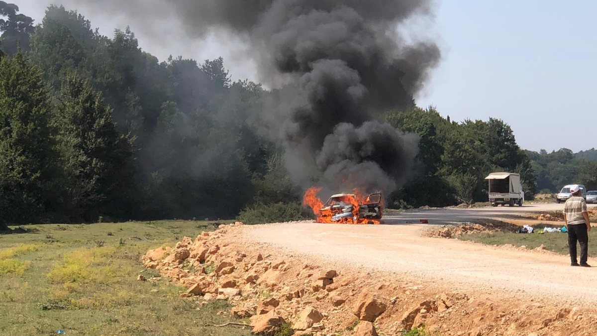 Sakarya’nın Taraklı ilçesi Karagöl Yaylası’na Kocaeli’den ailesi ile piknik yapmak için gelen Nurettin A. idaresindeki otomobil, seyir halindeyken bir anda alev aldı.