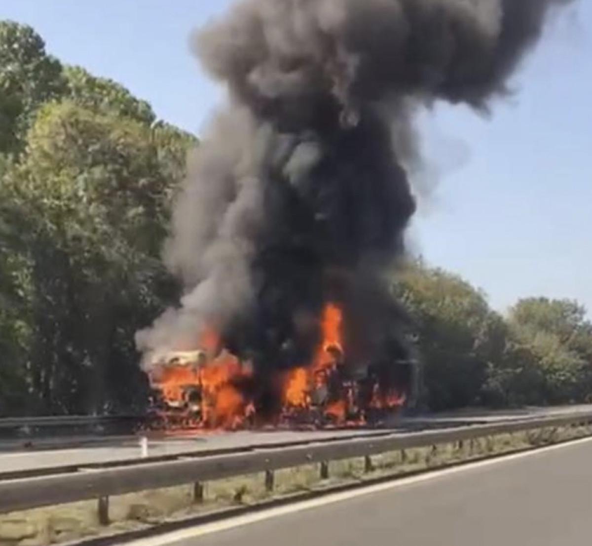Kısa sürede alev topuna dönen tırlar, tamamen yanarak kullanılamaz hale geldi.