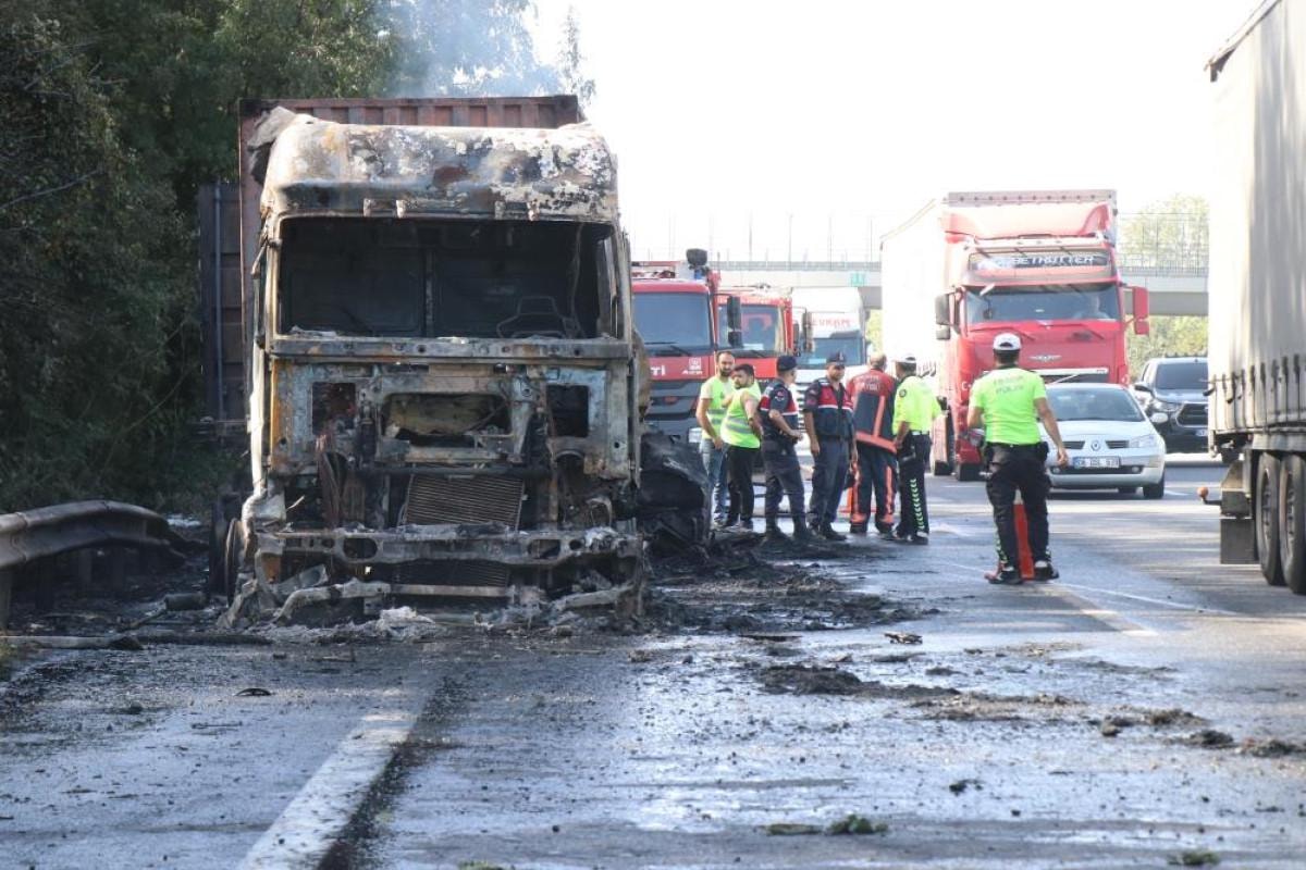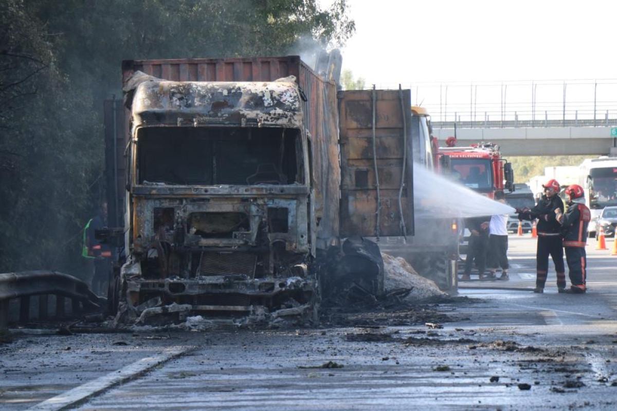 Çarpışmanın etkisi ile her iki tır alev aldı.