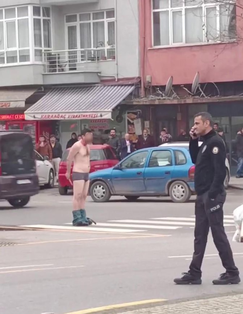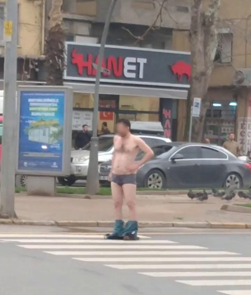 Daha sonrasında üstünü çıkaran ve yarı çıplak şekilde iç çamaşırları ile çevresine küfür ve hakaret savuran şahsa vatandaşlar müdahale edemedi.