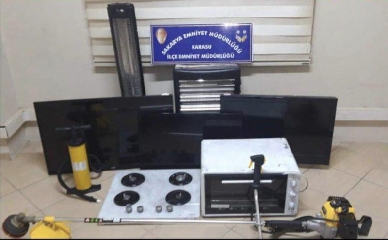Ayrıca, şüphelilerin ev ve eklentilerinde 12 elektronik malzeme, 5 televizyon, 3 kombi, 3 ısıtıcı, 1 fırın, 1 klima motoru ve 1 tabanca ele geçirildi.