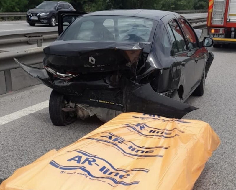 Sakarya'nın Sapanca ilçesinde, Ankara yönüne giden S.T idaresindeki otomobil, tırdan yola düştüğü iddia edilen köpük malzemesine çarpmamak için yavaşladı.