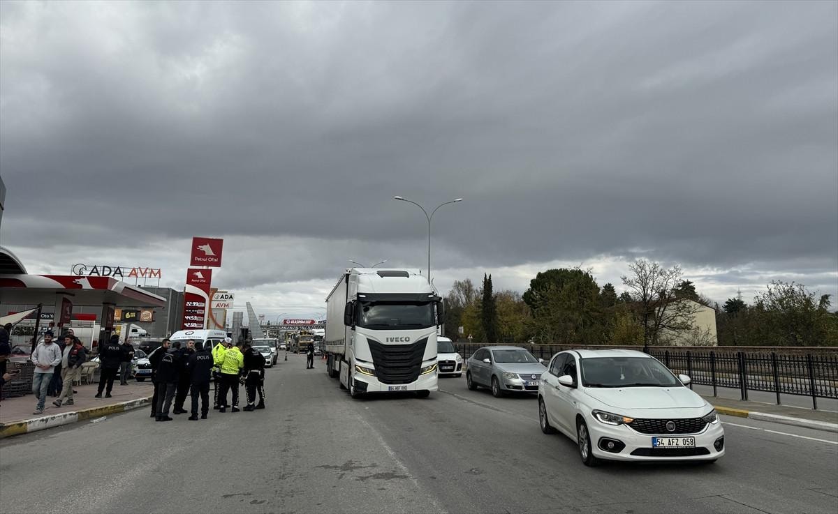 Sakarya'nın Erenler ilçesinde seyreden M.E. idaresindeki tır, Yeni Sakarya Caddesi'nde kırmızı ışıkta durdu.