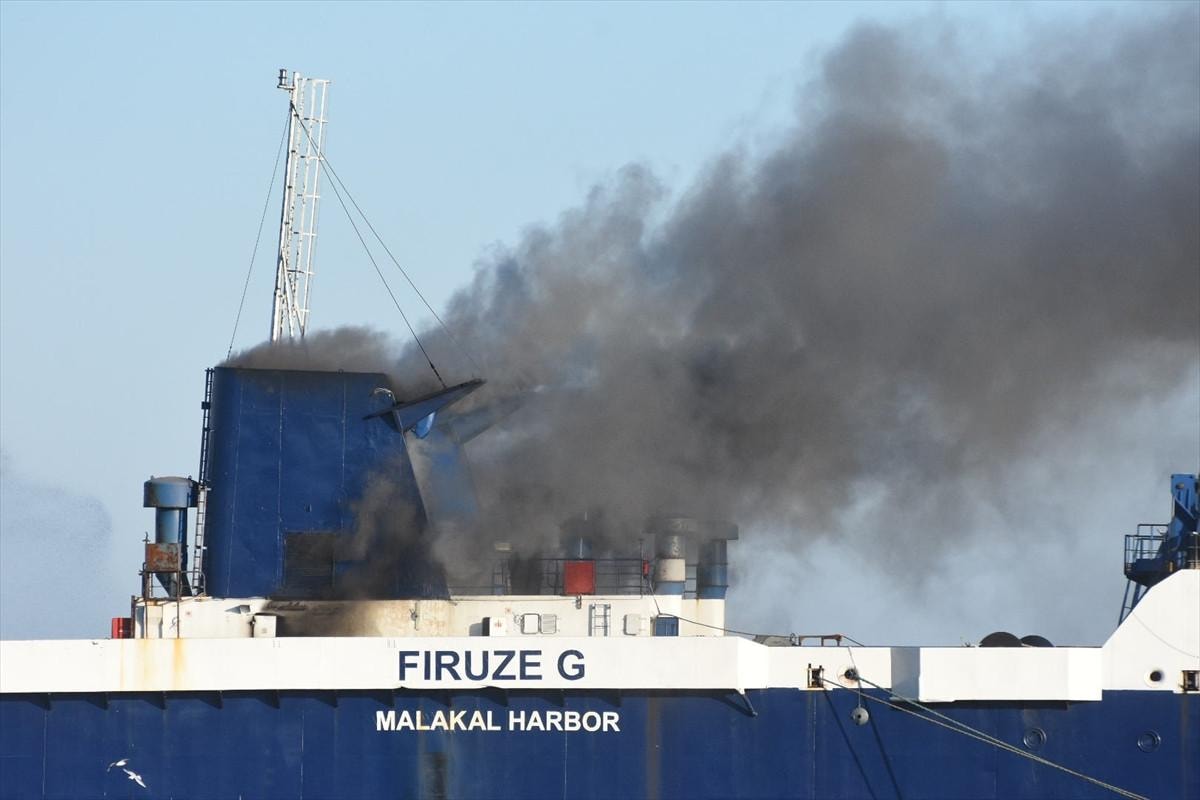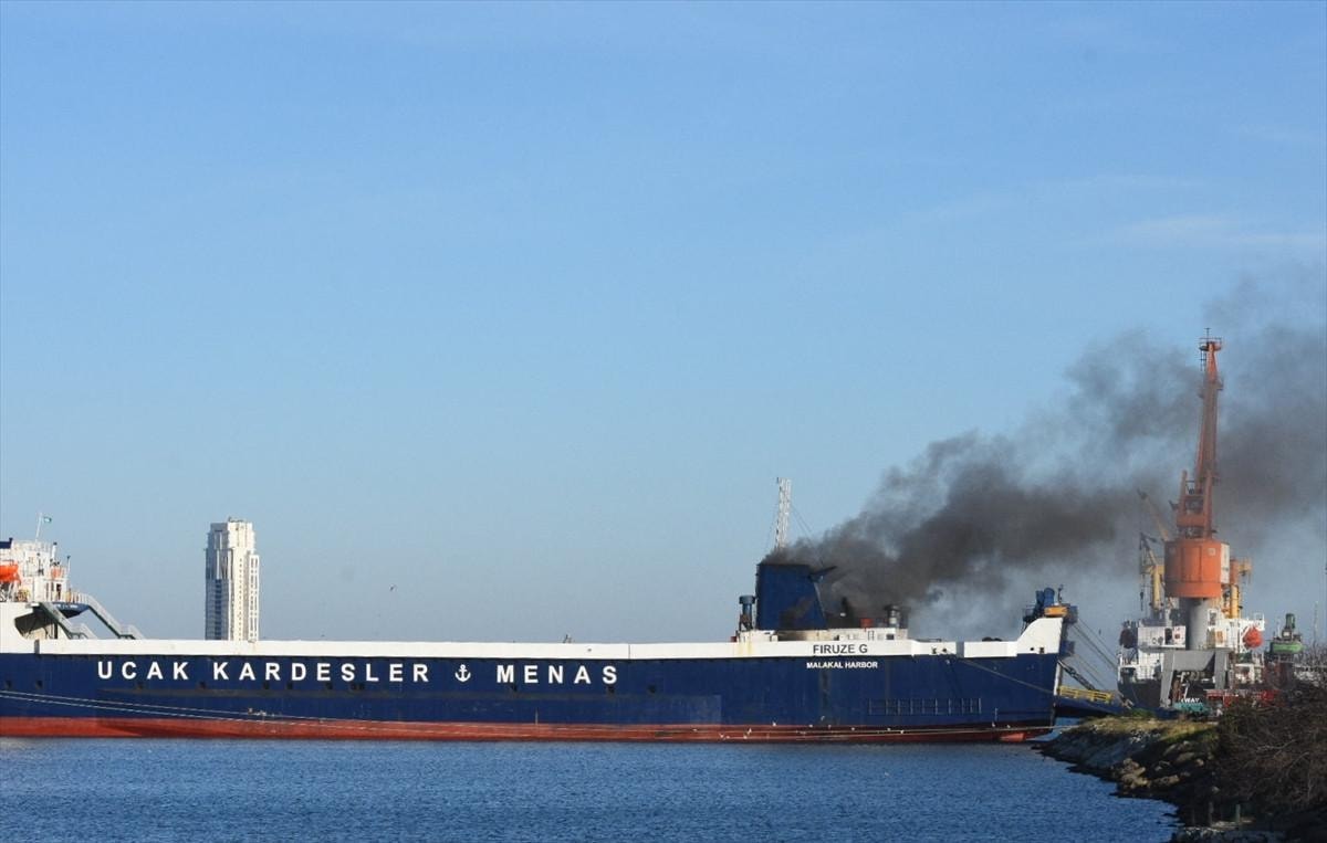 Samsun Port Limanı'nda bulunan "Firuze G." isimli kuru yük gemisinin makine dairesinde yangın çıktı.