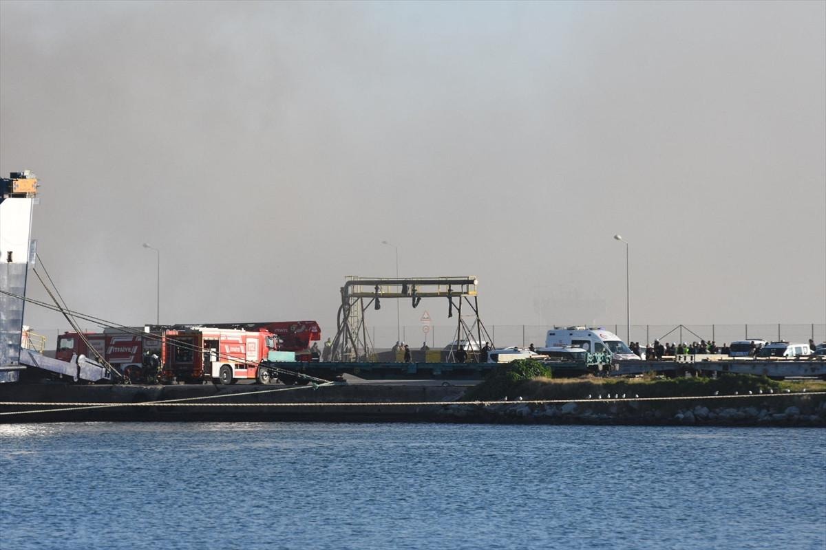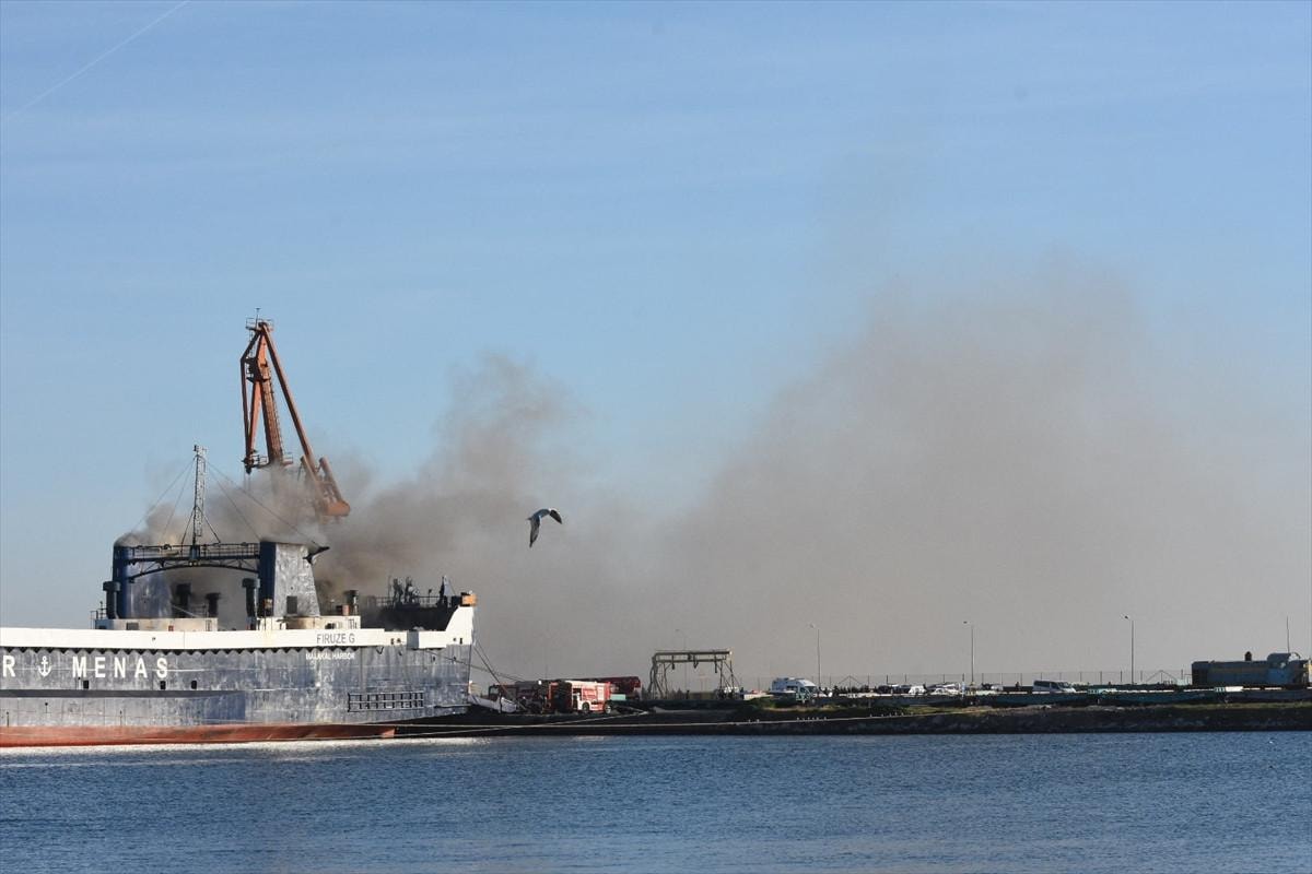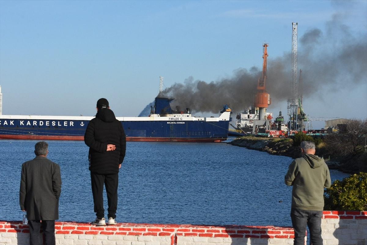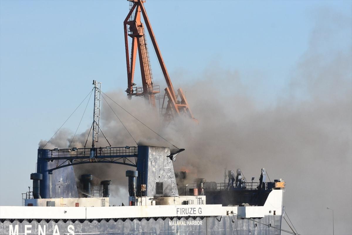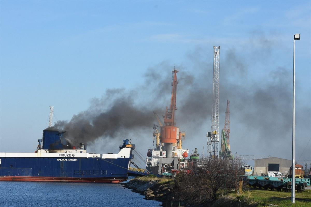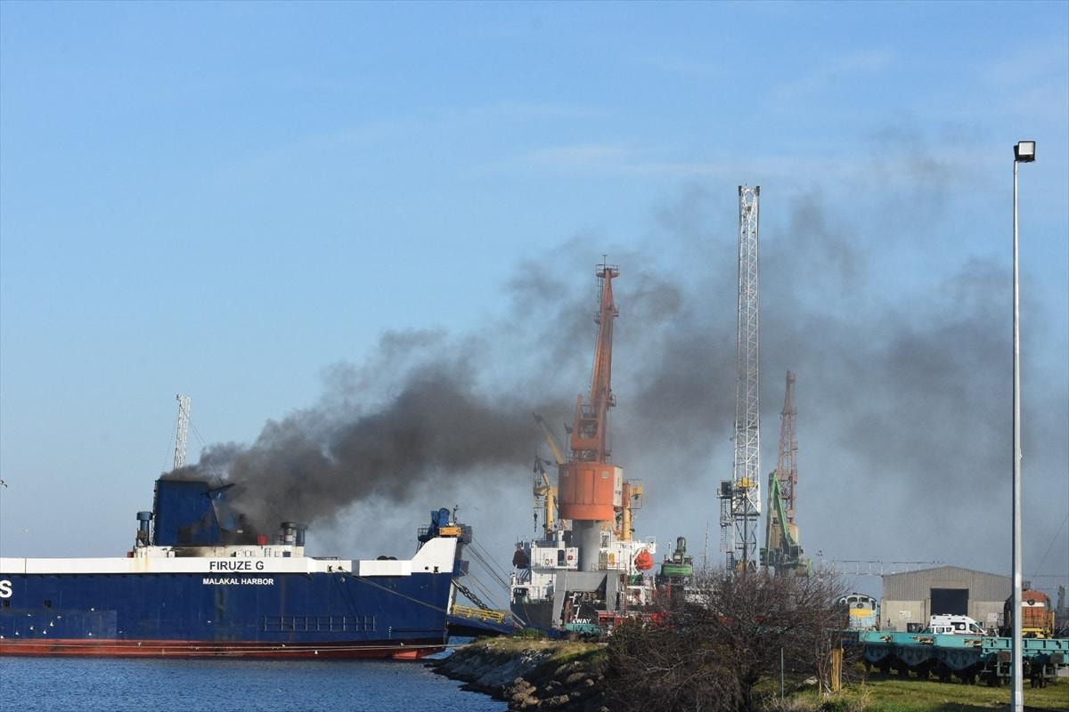 Samsun Limanı'nda bulunan kuru yük gemisinde yangın çıktı.
