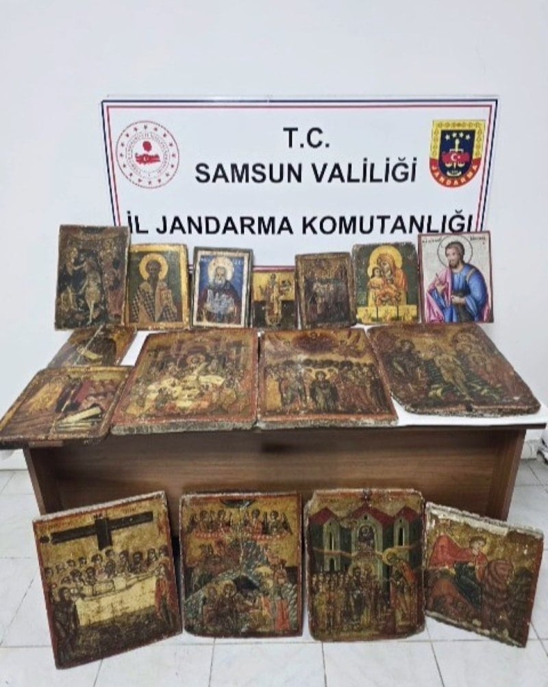 Samsun İl Jandarma Komutanlığı ekipleri tarafından şüphelilerin bulunduğu araçta yapılan aramada, 18. yüzyıla ait olduğu değerlendirilen 26 adet tarihi eser niteliğinde tablo ele geçirildi.
