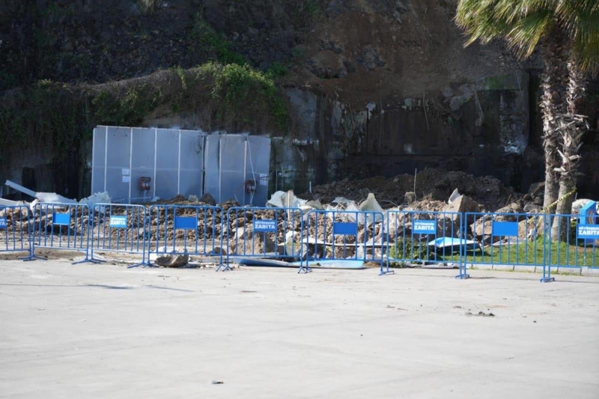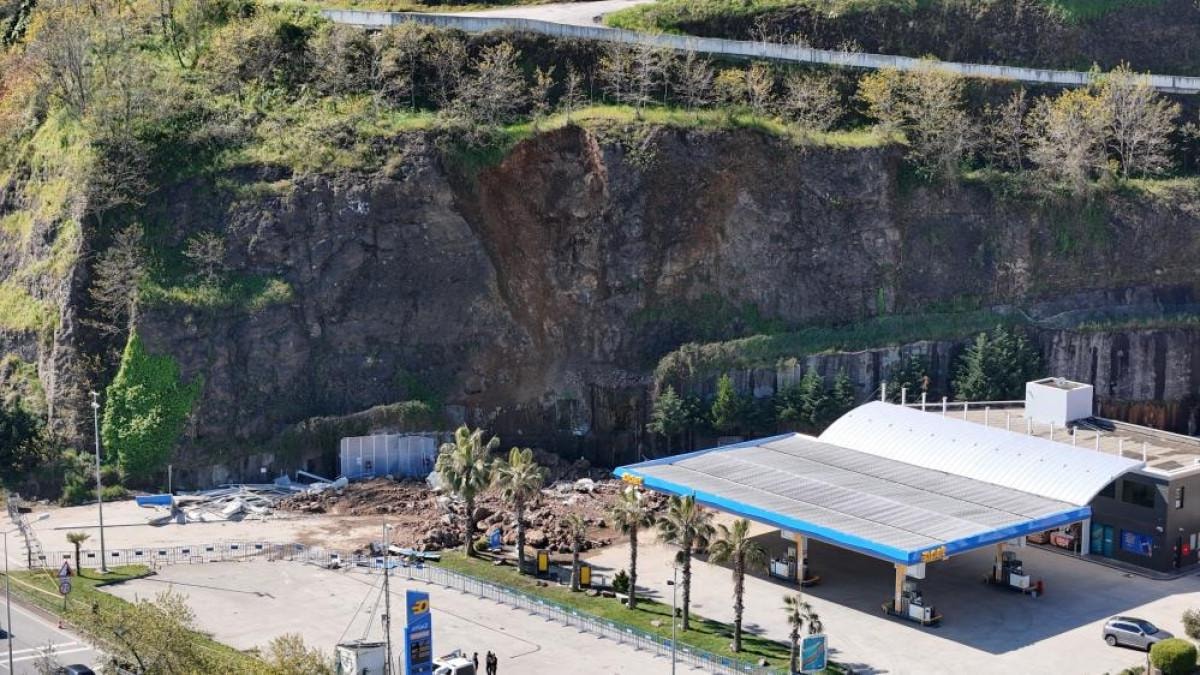 Canik ilçesi Toptepe Mahallesi'nde Lovelet AVM yanındaki Opet akaryakıt istasyonunda dağdan kopan toprak ve kaya parçaları, akaryakıt istasyonunun oto yıkama kısmına düştü.