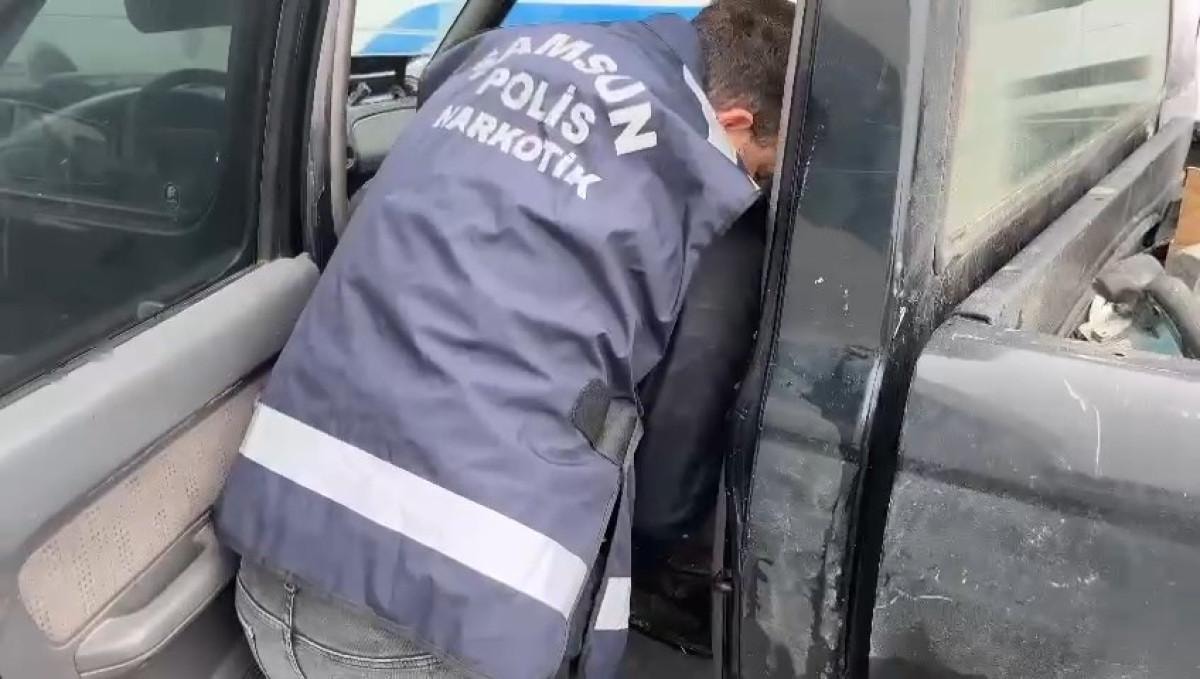 İlkadım ilçesinde durdurulan ve narkotik dedektör köpeği Tony ile yapılan aramada, aracın gizli bölmelerine zulalanmış halde 700 gram metamfetamin ve 25 gram eroin ele geçirildi.