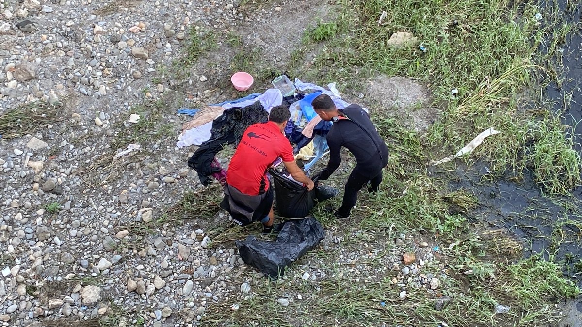 Irmağa inen ekipler, sudaki nesneyi çıkardı. Yapılan kontrolde, nesnenin bir gömleğe sarılmış kıyafetler olduğu belirlendi. Ekipler, kıyafetleri poşetleyip çöp kutusuna attı.