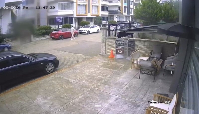 O.K.K.'nin S.D.'yi takip ettiği anlar, bir iş yerinin güvenlik kamerasına yansıdı.
