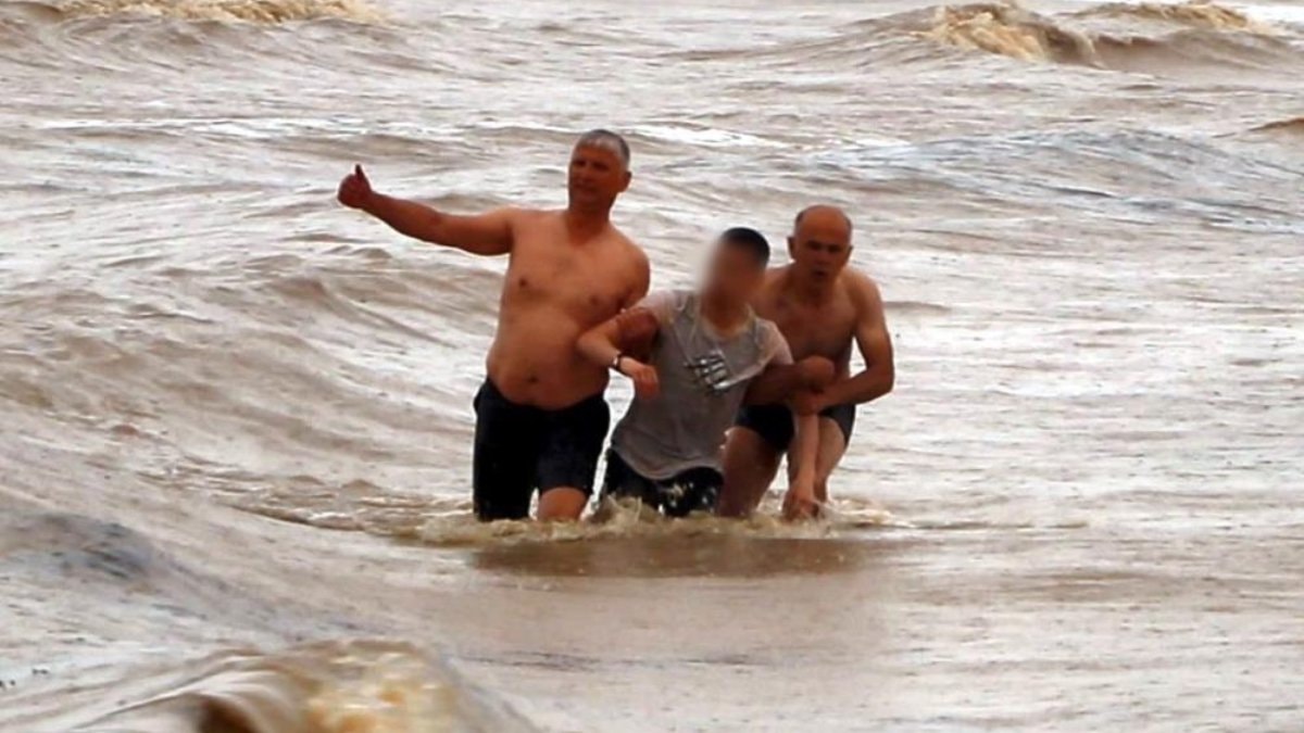 Sel nedeniyle çamur rengini alan denizde çırpınan çocuğu görenler 112’ye haber verdi.