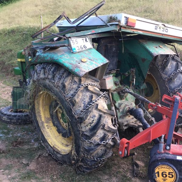 Fadıl Bozdemir kendisine ait engebeli arazide 55 TK 366 plakalı traktör ile ot biçerken direksiyon hakimiyetini kaybederek takla attı.