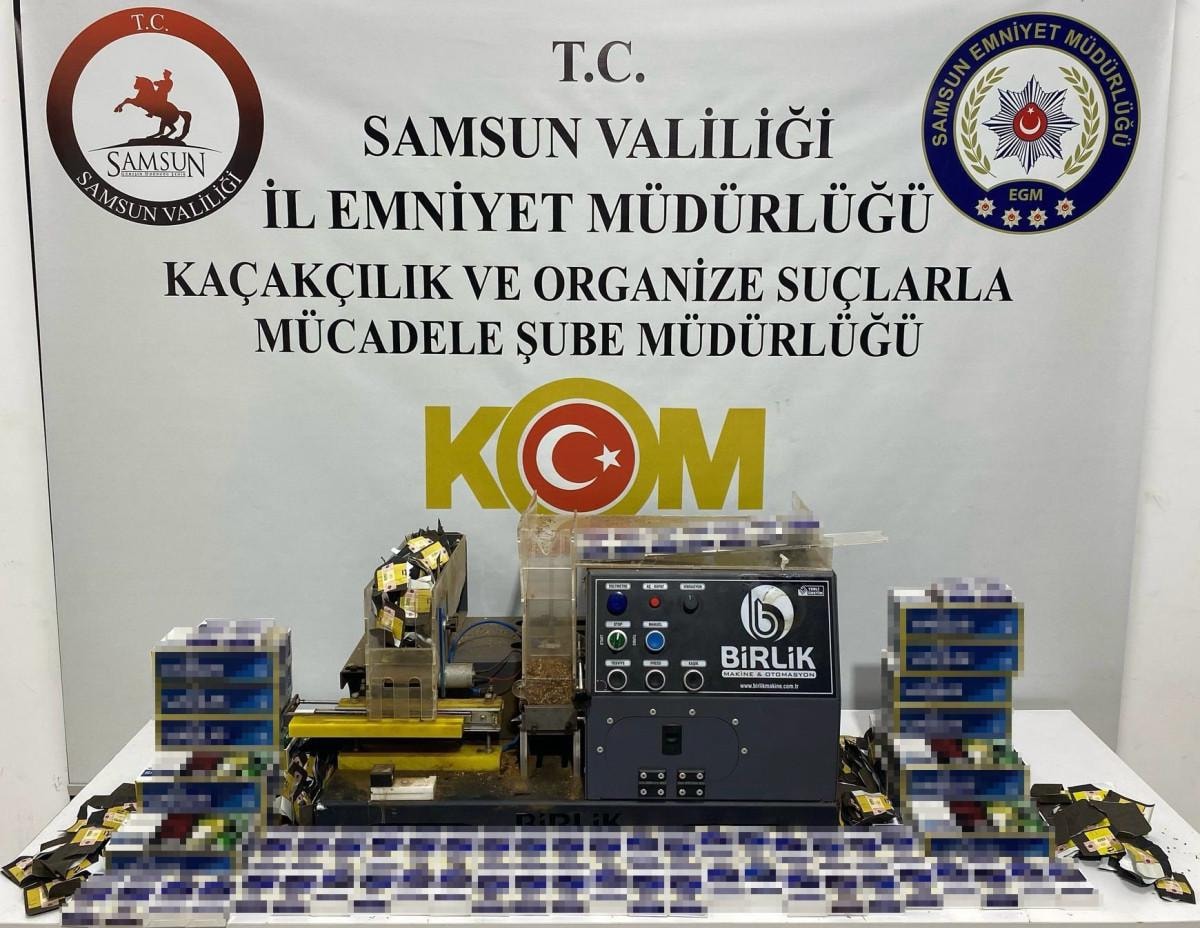 İlkadım ilçesinde gerçekleştirilen operasyonda kaçak sigara üretiminde kullanılan 1 adet otomatik sigara sarma makinesi, 5 bin adet doldurulmuş makaron sigara ve 292 adet TAPDK bandrolü bulundu.