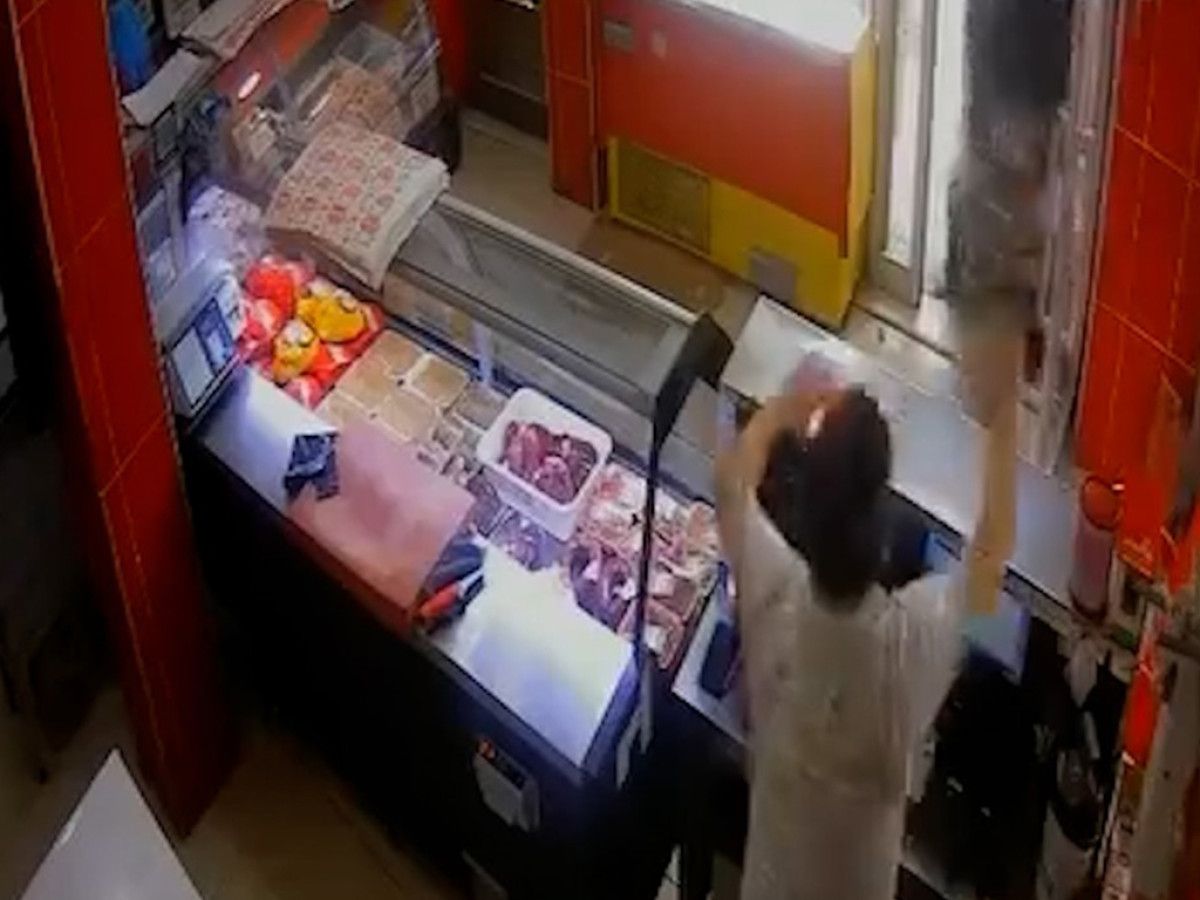 Kapıdan giren sürücü, bisikletiyle birlikte tezgaha çarptı.