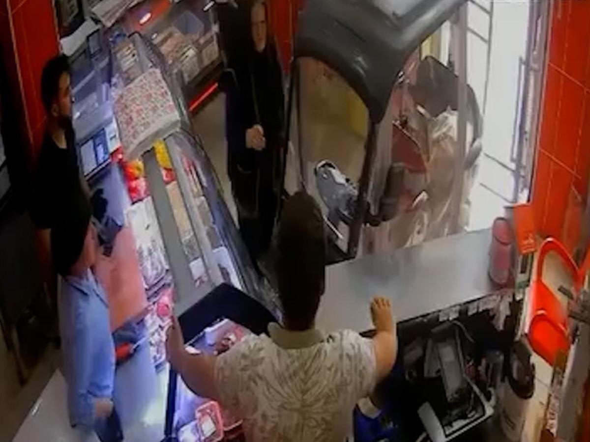 Güvenlik kamerasına yansıyan görüntülerde kazanın hemen ardından kadının bisikletten indiği ve iş yeri çalışanlarının yardımıyla aracını dışarı çıkardığı anlar yer aldı.