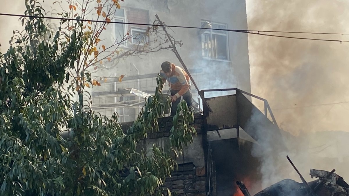 Ekiplerin yangın bölgesine intikalinden önce, deponun bulunduğu evin sahibi kova ile taşıdığı suyu dökerek yangını söndürmeye çabaladı.