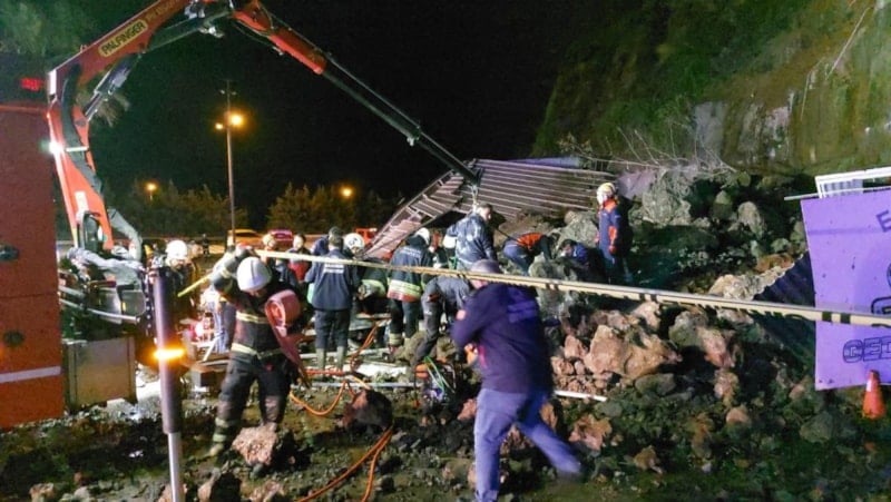 Samsun'da meydana gelen heyelanda akaryakıt istasyonunun oto yıkama bölümünün üstüne kaya parçaları düştü. 4 kişilik ailenin aracı kaya parçalarının altında kaldı. Ekipler anneyi yaralı olarak kurtarırken baba ve 2 çocuğu ise yaşamını yitirdi.